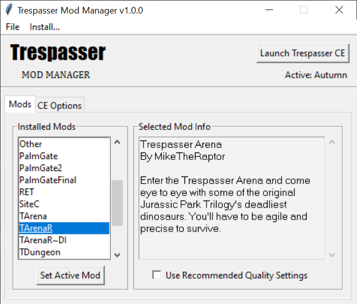 TMM simplifies the process of toggling the active mod in Trespasser by providing a GUI and removing the need to manually edit config files.