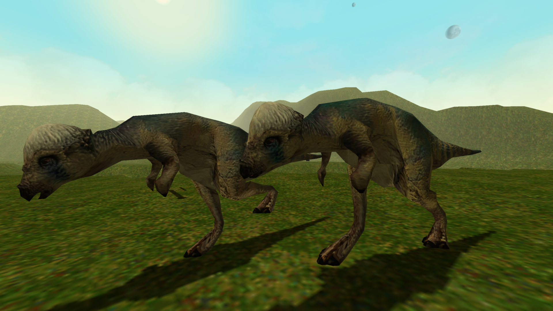 I know the two pachycephalosaurs in the image look similar, but they both have somewhat different textures. Eyeballing the CGI version shown during the round-up scene, it looked to be a more yellowish shade with brighter blue patches, whereas the animatronic was more faded and brown. So after going back and forth between variants I decided to just do both. It's not super obvious in the image at all, but the difference is there. They look good alongside one another as variants on the same pattern. So...here are two new pachycephalosaur skins for everyone!"