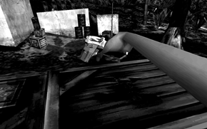 While holding an object, turn and look in the direction you wish to throw, then press the F key. If an object is out of reach, a rock or similar object can be thrown against it to make it fall down. Throwing is not very effective against dinosaurs. It's better to strike them with an object rather than trying to throw it against them.